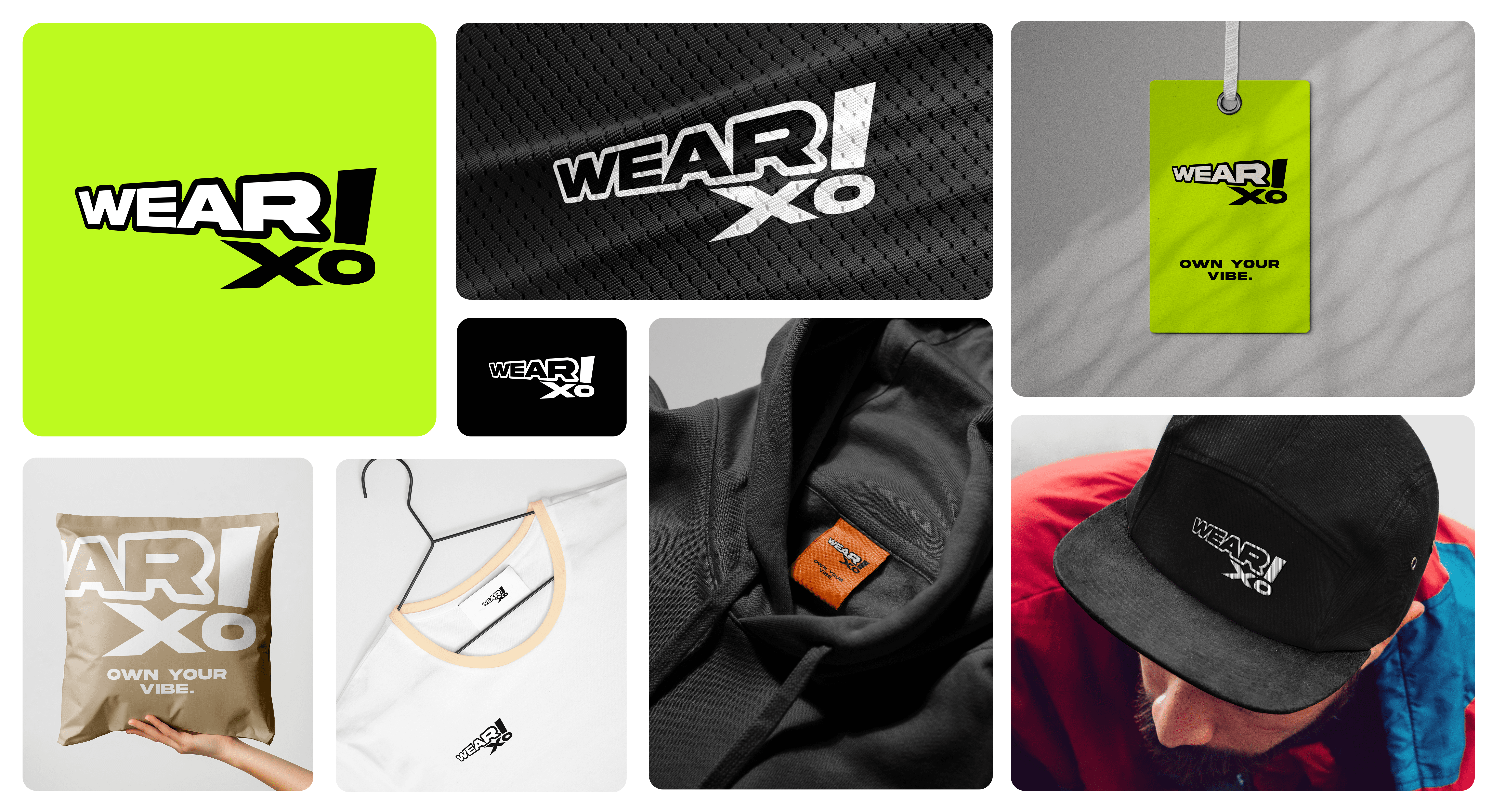 The brand identity for WEARXO was designed to reflect a modern, expressive apparel brand that encourages individuality and confidence. The core idea behind the visual system was to create a bold yet adaptable identity that could live comfortably across streetwear, casual apparel, and lifestyle products. The logo was developed using strong, angular typography to convey energy, movement, and attitude—qualities commonly associated with contemporary street fashion. The slightly aggressive cuts and compact letterforms were intentional, allowing the logo to remain impactful even at smaller scales such as neck labels, tags, and embroidery, while still standing out in larger applications like packaging and apparel prints. A high-contrast color palette was chosen to strengthen brand recall. The use of black and white ensures versatility and longevity, while the neon green accent adds a sense of youth, vibrancy, and visual disruption. This combination helps the brand feel fresh and modern without becoming trend-dependent. The identity system was designed with real-world applications in mind. The logo and supporting visuals were tested across multiple touchpoints including clothing tags, fabric labels, packaging, caps, and apparel mockups to ensure consistency, legibility, and durability in both print and textile contexts. Overall, the WEARXO brand identity focuses on clarity, confidence, and flexibility—creating a visual language that supports the brand’s message of self-expression while remaining scalable for future growth and collections.